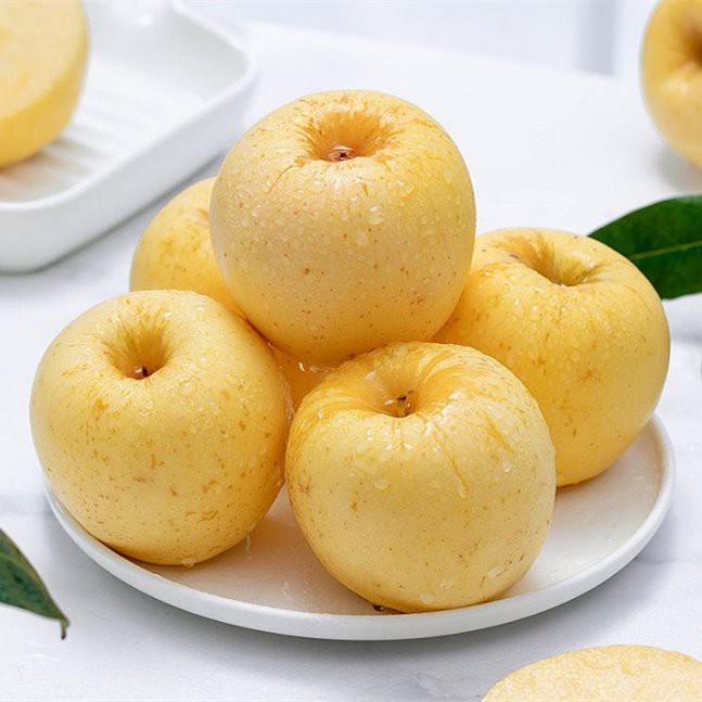 Quả táo vàng là giống của Nhật Bản được giới thiệu bởi Sơn Đông, một tỉnh trồng cây ăn quả lớn. Nó có vị khác với những quả táo thông thường luôn có một chút chua, có thể nói là ngọt và gần như ngọt! Nó không chỉ ngọt mà còn rất giòn. Mỗi miếng cắn là một tiếng “click” giòn tan, ăn xong miếng táo có hương thơm mật ong trái cây đậm đà phảng phất trong miệng.
